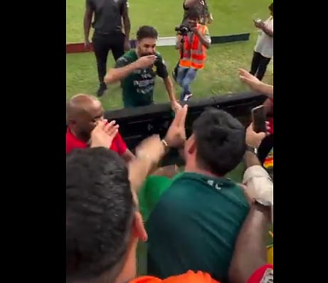 இதற்கிடையே, பாகிஸ்தான் அணி நேற்று வங்க தேசத்தை தோற்கடித்ததும், அந்த அணியின் வீரர் ஹாரீஸ் ரவுப் ரசிகர்களுக்கு கை கொடுத்து வாழ்த்துக்களை பெற்றுக் கொண்டிருந்தார். அப்போது, ஒரு பாகிஸ்தான் ரசிகர் அவரின் கையை பிடித்துக் கொண்டு, இன்னோரு முறை இந்தியாவிடம் தோற்று விடக் கூடாது, நாம் யாரென்று காட்ட வேண்டுமென்று கூறி அவரிக் கையை பிடித்து கொண்டு உணர்ச்சி பெருக்கில் குமுறினார். கடைசியாக, கை எடுத்தும் கும்பிடவும் செய்தார். இந்த வீடியோ இணையத்தில் பரவி வருகிறது. கடந்த 8 நாட்களில் இந்தியாவிடம் இருமுறை தோற்ற காரணத்தினால், பாகிஸ்தான் ரசிகர்கள் மனதளவில் கடுமையாக சோர்வடைந்துள்ளதையே இது காட்டுகிறது.